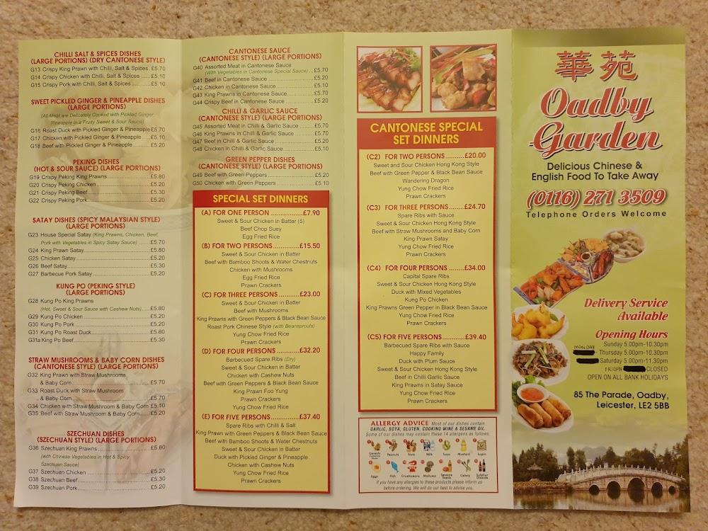 Located at 83 The Parade in Oadby, Leicester, Oadby Garden stands out with its welcoming vibe and inviting decor. This bustling eatery is wheelchair-accessible, ensuring everyone can enjoy a hearty meal. The neighborhood provides ample free street parking, so there’s no hassle in finding a spot. Oadby captures a community feel with friendly locals and familiar faces frequenting this favorite spot. Whether you're a resident or just passing through, the inviting atmosphere makes dining here feel like a warm embrace. Oadby Garden remains open every day of the week, making it easy to fit into any schedule. The restaurant readily accepts reservations, which can help avoid wait times during the peak dining hours. With a mix of traditional and modern Chinese cuisine, there's something for everyone. A visit here is more than a meal; it’s an experience that nourishes the soul and satisfies hunger.